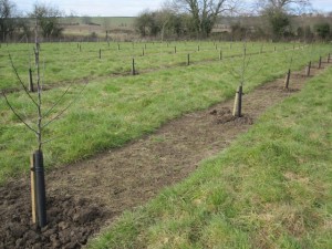 Planning the orchard was a big task, I had so many decisions to make all of which would have very long lasting effects: which varieties, which rootstocks and what spacing. Phase I of the orchard (winter 2010/11) is planted on M106 rootstocks but I then decided that maybe MM111 would be more appropriate to the clay soil, this was the great advantage of planting in phases – learning from mistakes / acquiring more knowledge.