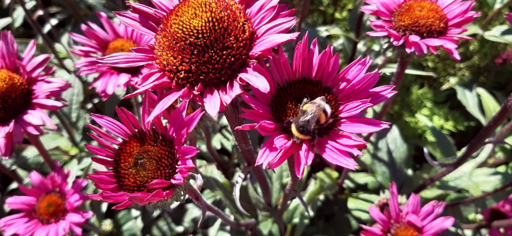 Contact email angela@wildgardens.co.uk Tel: 01749 938778 Echinacea provide a lovely landing pad for bumble bees