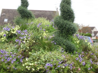 Driving through France recently – on my way to visit family and give a talk on ‘coppicing’ to a gardening club – I had great fun photographing ‘les ronds points Anglais’ I think these could become a subject of another gardening club talk.