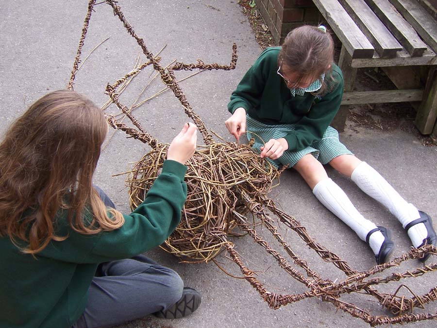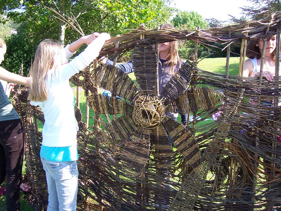 I offer a wide range of workshops, catering for all age groups, in schools, communities, galleries as well as at special events.   Projects include wildlife gardens, sensory gardens, ‘arts week’ activities and sculpture trails (willow fish, sculptural weaving, willow flowers, dragon flies, butterflies, living willow tunnels, etc…).
