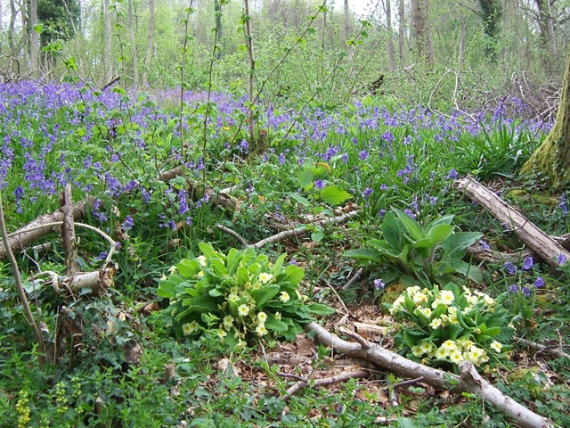 coup 3 regrowth one year on spring flowers & new coppice shoots early purple orchid, yellow archangel
